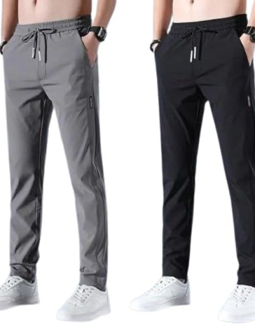 Men Solid Black, Grey Track Pants ( Pack of 2 )